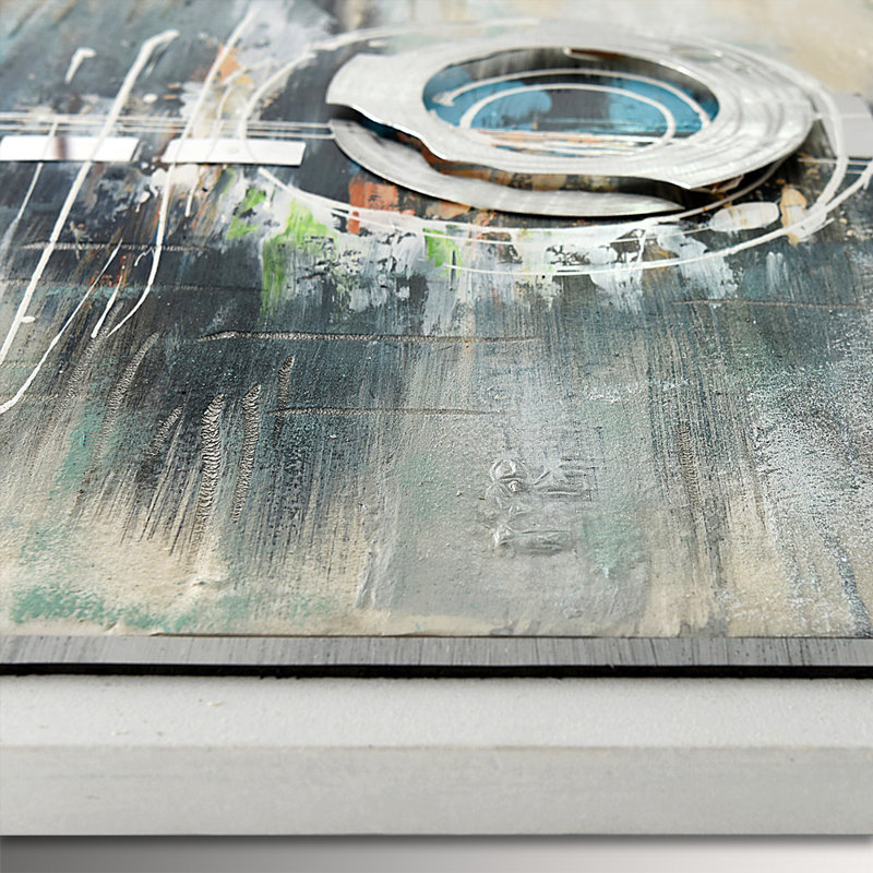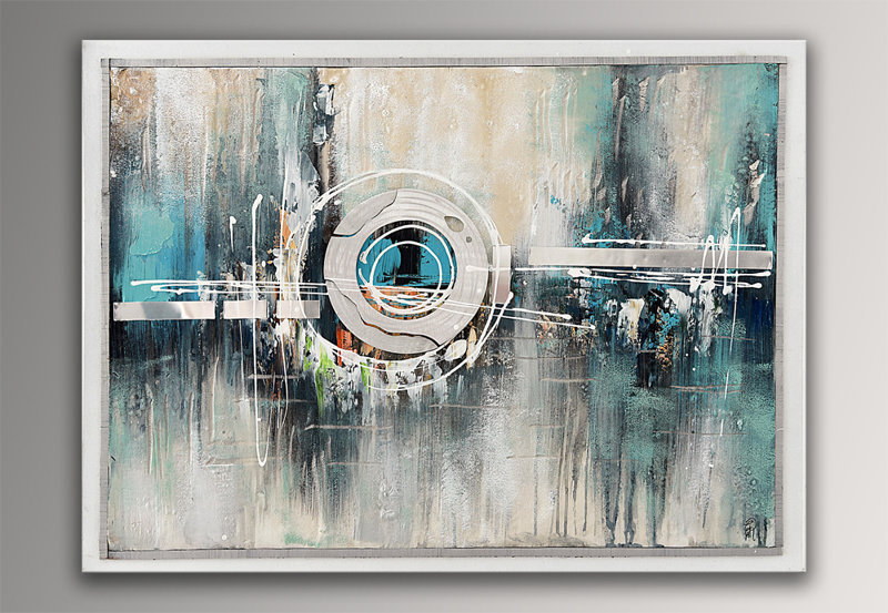 Quadro, dipinto a mano astratto su tela con decorazioni in rilievo e montato su telaio estetico alto
