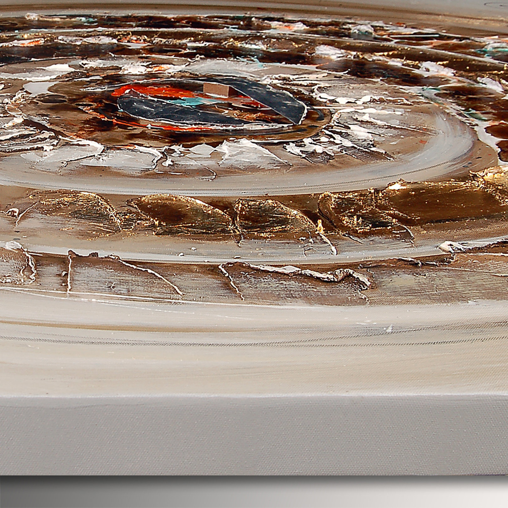 Quadro, dipinto a mano astratto su tela con inserti metallici e decorazioni in rilievo e montato su telaio estetico alto