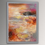 Quadro, dipinto a mano astratto su tela con decorazioni in rilievo e montato su telaio estetico alto