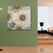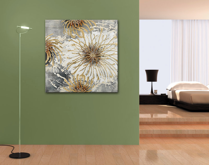 Quadro, dipinto a mano floreale moderno su tela con decorazioni in rilievo e montato su telaio estetico alto