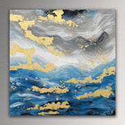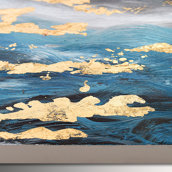 Quadro, dipinto a mano astratto su tela con decorazioni in rilievo e montato su telaio estetico alto