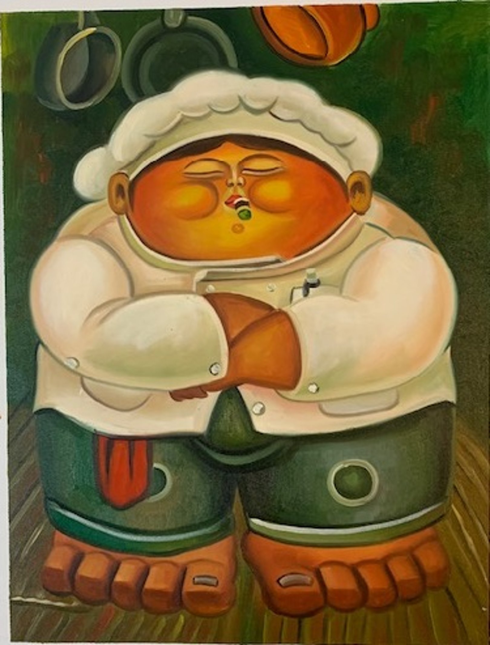 Il cuoco è una bella riproduzione del pittore Godoy che ritrae òla siesta del cuoco. Si ispira peer le forme alla tipica pittura del Maestro Botero con personaggi atipici.